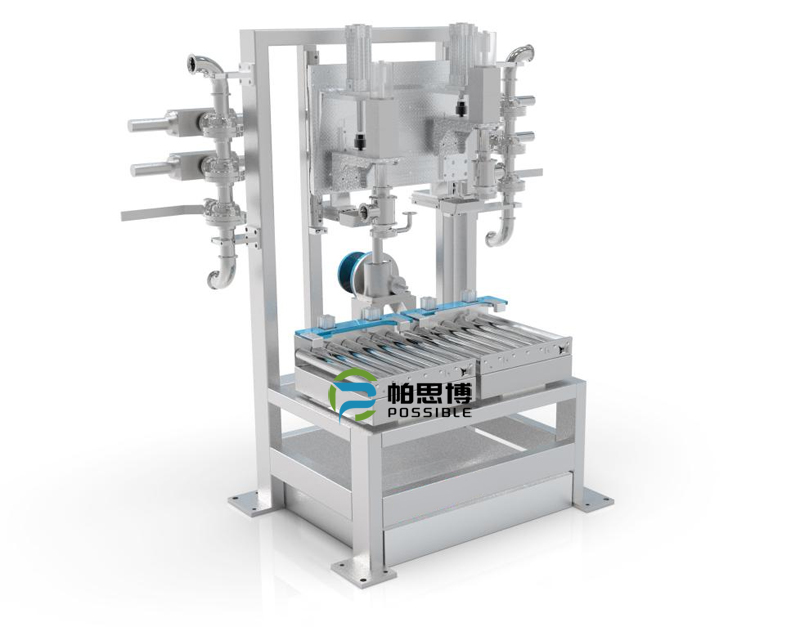 The dual-station system achieves automation with manual barrel loading, manual alignment, automatic quantitative filling, manual cap screwing, and manual barrel retrieval. The equipment is equipped with a limiter, allowing operators to simply place the barrel on the filling station and move it left and right to complete the alignment. After filling, the heavy barrel can be pushed to the right-side free roller conveyor for cap screwing and other operations. Optional equipment such as explosion-proof motors can be equipped.
